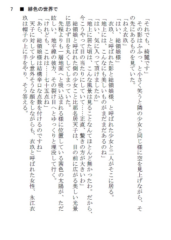 こんな風にして、暇を持て余した天子ちゃんがやらかした(語弊)一日の出来事へと繋がります。