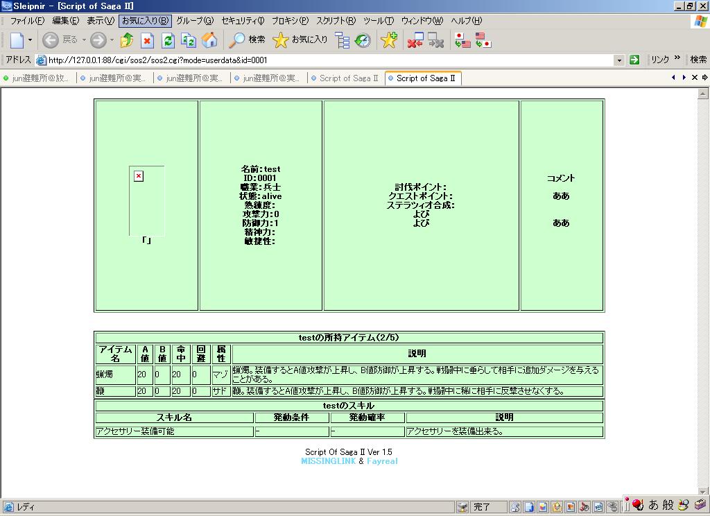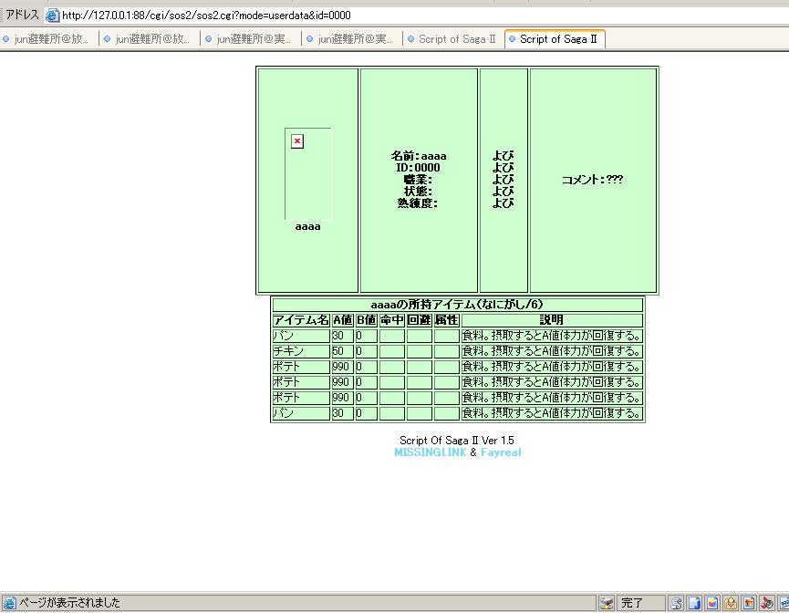 デフォルトのスクリプトにはこうやって手持ちのアイテムを説明してくれる箇所はおろか、手持ちのアイテム全表示しつつステータスの詳細を出してくれる親切なルーチンなんぞ存在しないわけです。